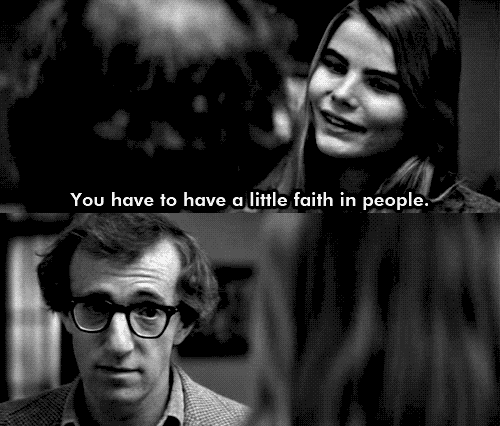 Isaac Davis: Hey, don’t be so mature, okay? I mean, six months is a long time! Six months, you know you’re gonna be, you’ll be in, in, in, in the th – working in a theater there, you’ll be with actors and directors, you kno w you’re, you know, you go to rehearsal, and you, you hang out with those people, you have lunch a lot, and, and, before you even know it attachments form and, and, you know, I mean, you, you don’t want to be get into that kind a, I mean, you, you’ll change. You know, you’ll be, you’ll be, in six months you’ll be a completely different person.