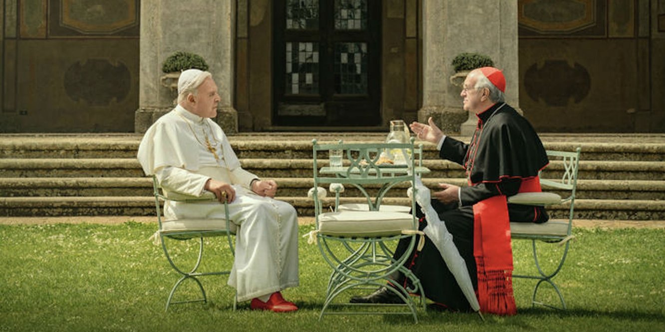 Entre os filmes que estão prontos e prestes a ser lançados, um dos que mais está me atraindo é a produção original da NETFLIX, OS DOIS PAPAS (THE TWO POPES), dirigido por Fernando Meirelles e escrito pelo roteirista Anthony McCarten, de BOHEMIAN RAPSODY e A TEORIA DE TUDO.