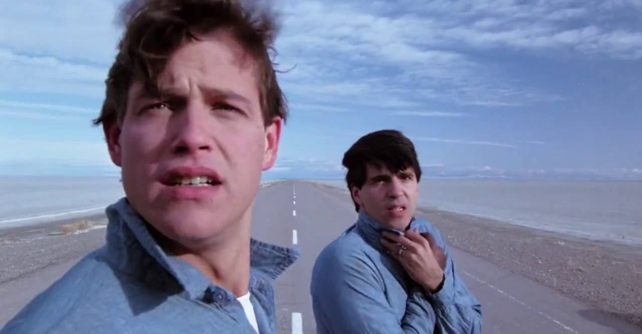 In 1984, I remember seeing on a VHS tape taken from the video store, the film THE PHILADELPHIA EXPERIMENT, directed by English Stewart Raffill. It was a mix of adventure film and science fiction that told the Philadelphia Experiment, where the American government, during World War II, tried to make the ships disappear from enemy radars by generating a strong electromagnetic field from inside the vessels. Something goes wrong, many sailors are burned to death and two of them fall into a hole in time and end up in a small town in Nevada in 1974.