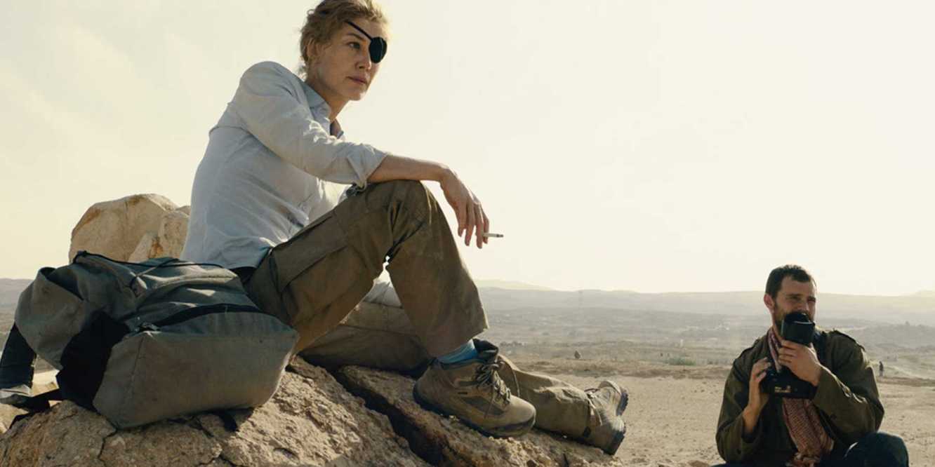 In one of her best scenes, Pike interviews the residents of Ohms, hiding in a bunker. There, in two continuous sequences, in which the director seeks to expose the cruelty of the Syrian War, Pike, with the help of the camera man, the actress manages to keep her left eye immobile, and suffers emotionally together with an interviewee. Then, she runs desperate in the face of the bombings, gets hysterical … and, finally, tells the photographer, that she will not abandon the victims, making her historical transmission.