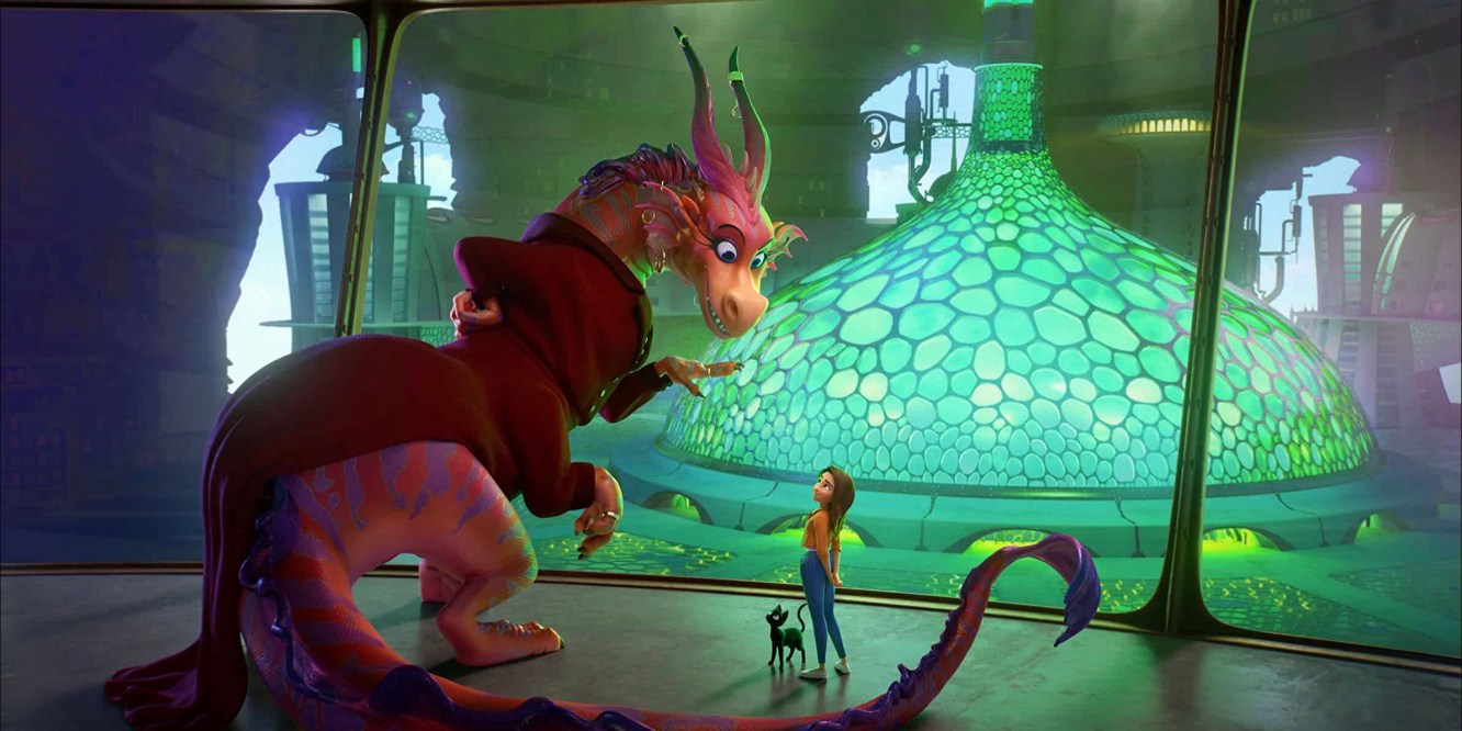 Ali, ela conhece duas outras personagens essenciais: a Rainha Dragão (Jane Fonda sempre expressiva) e a chefe (Whoopi Goldberg).