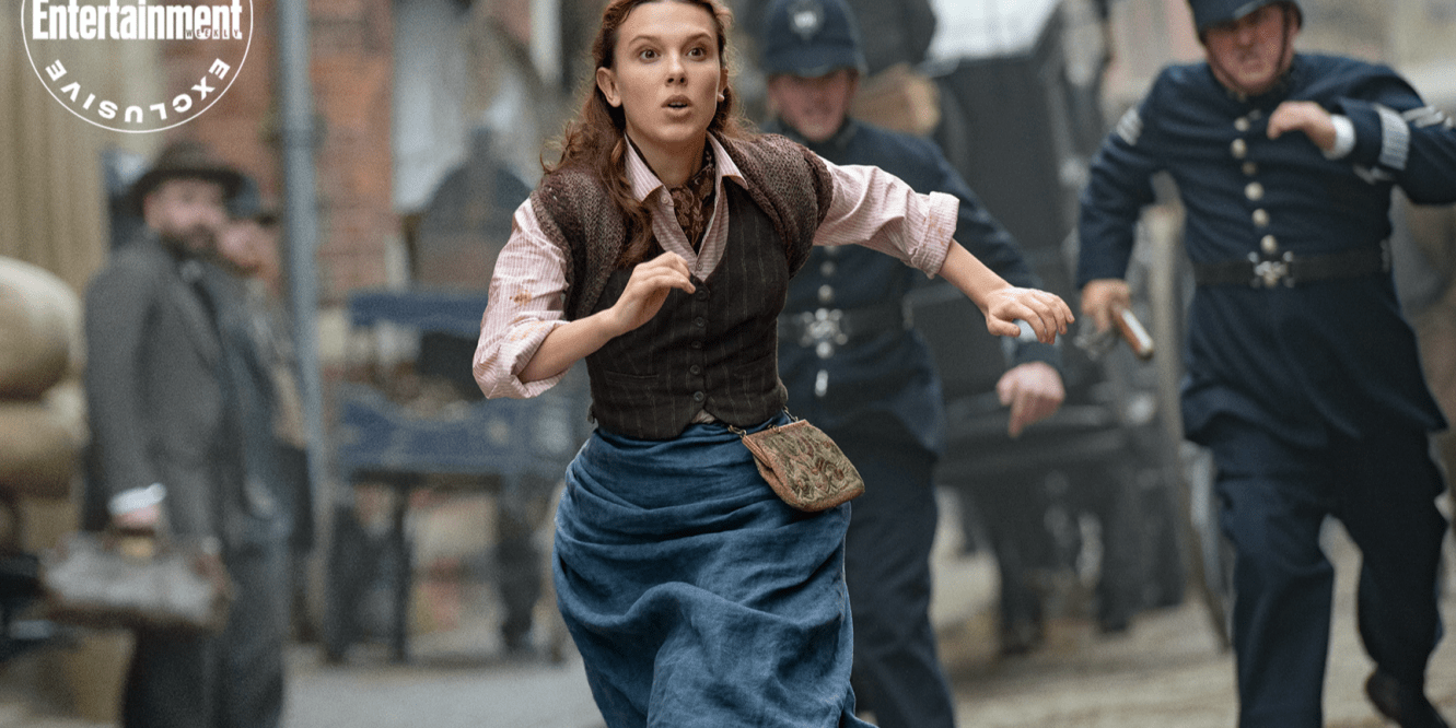 Millie Bob brown, a estrela de STRANGER THINGS volta a viver a irmã de Sherlock Holmes (Henry Cavill), que é chamada para investigar o desaparecimento de um jovem na Inglaterra Vitoriana.