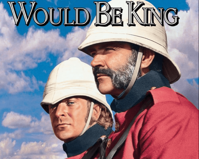 Os dois personagens centrais eram Daniel Dravot (Sean Connery maravilhoso) e Peachy Carneham (Michael Caine no auge de sua arte), ex-soldados de Sua Majestade que ficaram na Índia e vão para o País Kafiristan, onde nenhum branco pisou desde Alexandre, o Grande, com o intuito de governar o País.