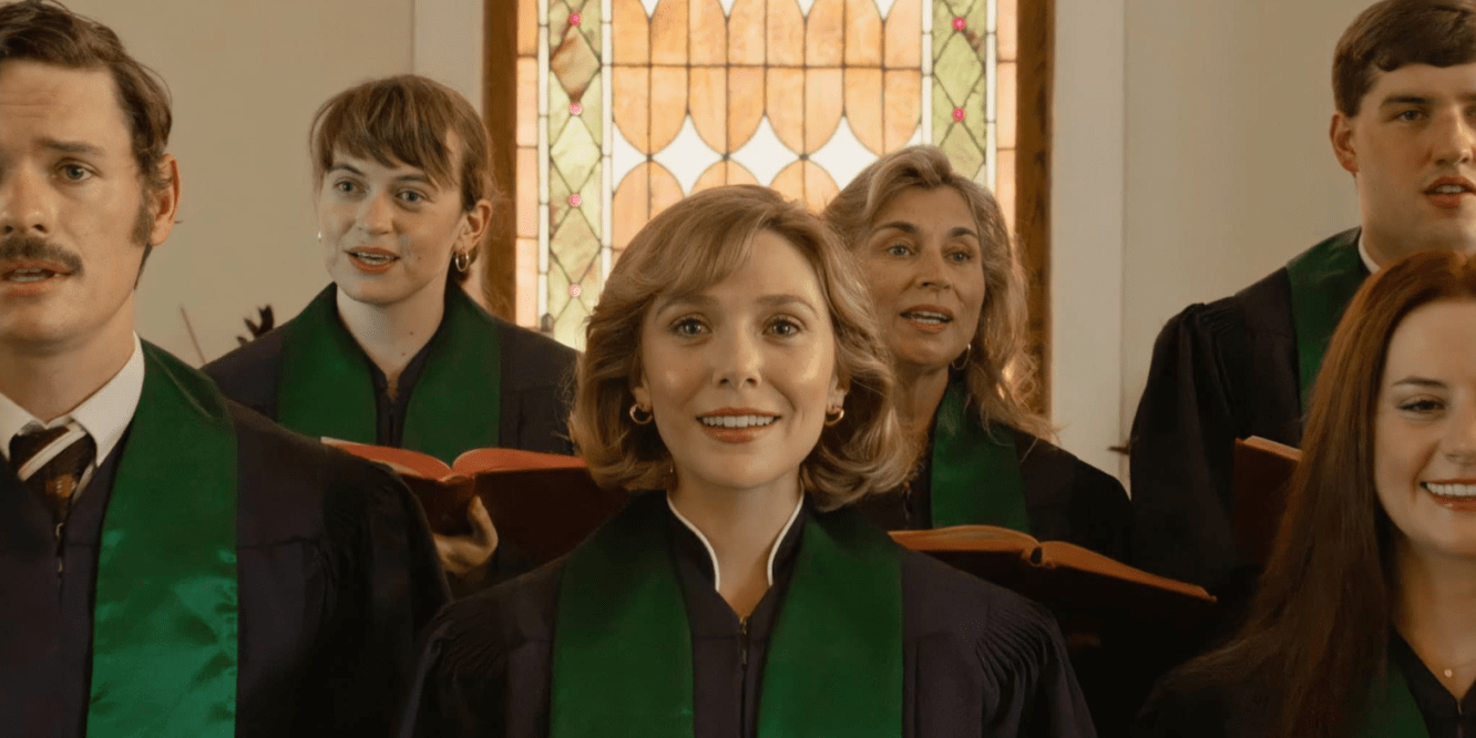 Aqui é a ótima Elizabeth Olsen que vive Candy, uma pacata dona de casa, casada e com dois filhos, vivendo em uma pacata comunidade religiosa do estado do Texas, que na década de setenta matou com golpes de machado a vizinha esposa do homem com quem tinha um caso extra conjugal.