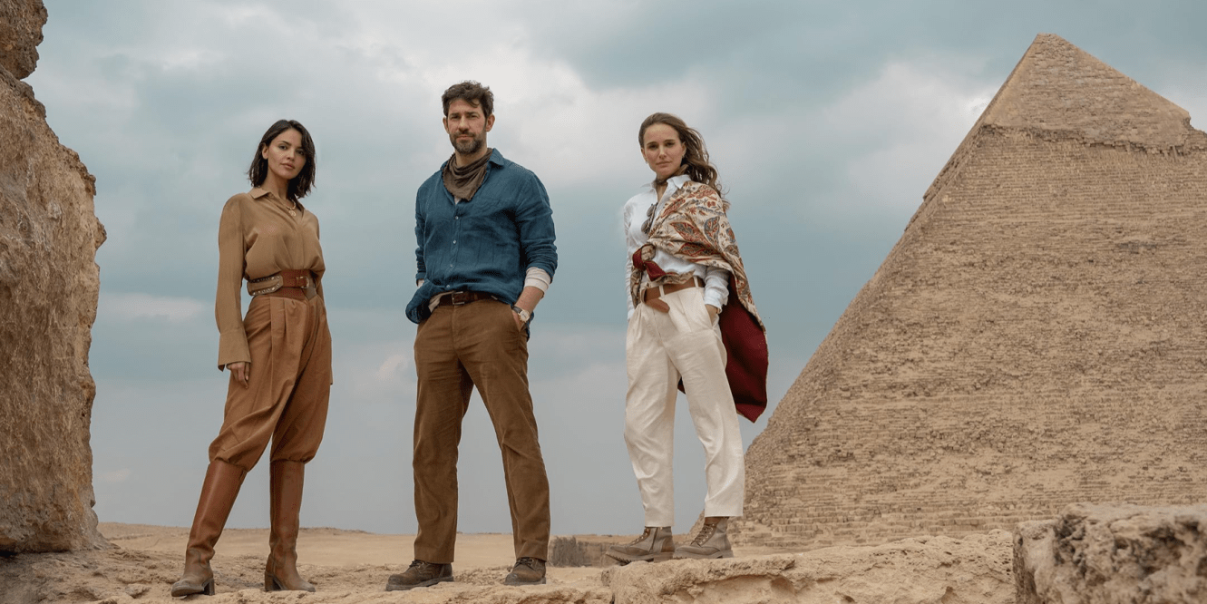 John Krasinski vive o aventureiro Luke Perdue, que envolve a irmã Charlotte (Natalie Portman, sempre maravilhosa) na busca pela fonte da juventude. Atrás deles todo tipo de pessoas, desde um policial da INTERPOL (Aryan Moyaed), uma lindíssima protetora de relíquias (Eiza Gonzalez), um bilionário vilão (Domhnall Gleason) e até Stanley Tucci em pequena participação.